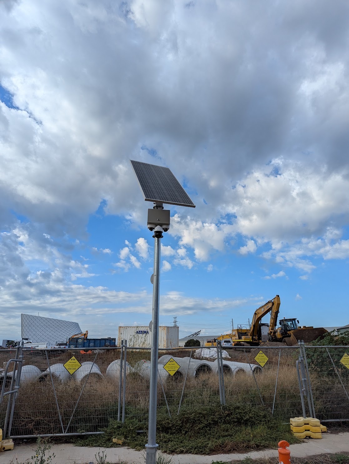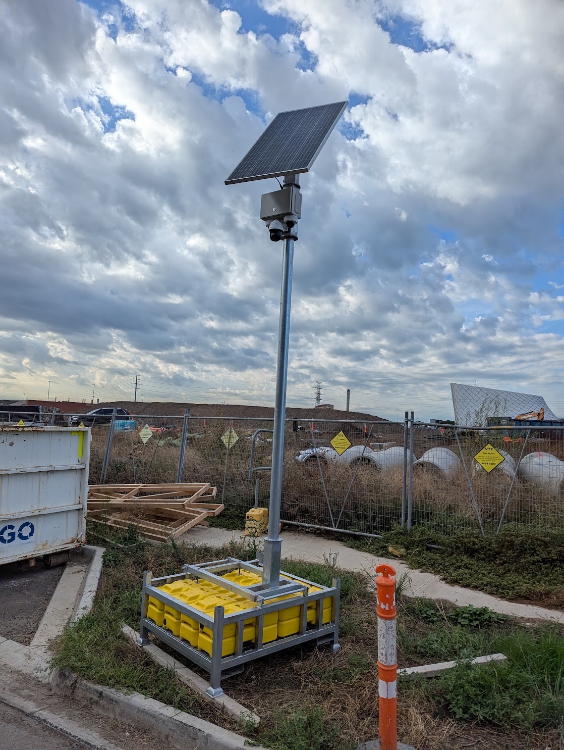 VTF’s temporary surveillance camera systems are purpose-built for short and long-term site deployment. Mounted on heavy-duty steel camera racks (engineered for stability and durability), our systems provide elevated coverage with remote monitoring capability.